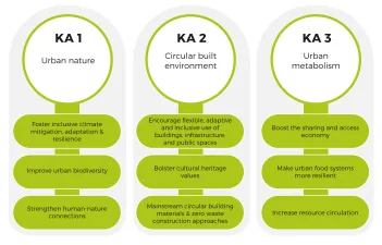 The CUE TP focuses on three Key Areas of Action (KAs): Urban nature, Circular Built Environment and Urban metabolism.