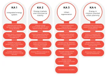 The PED TP focuses on four Key Areas of Action (KAs): Integrated Energy System, Energy Markets and Commercial Viability, Urban Regeneration, Energy in Mission-oriented Urban Planning.