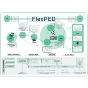 FlexPED aims to deliver an open, intelligent, and adaptable energy data management and flexibility framework that powers a next-generation UDT platform. By combining AI-driven forecasting, agent-based simulation, and real-time energy data integration using OGC (Open Geospatial Consortium) standardised web services, the project will unlock new levels of flexibility, improve energy efficiency, close interoperability gaps, and empower stakeholders at all levels to make proactive, data-informed decisions. The outcomes will provide a scalable blueprint for replicating the solution in other EU cities/future PEDs.